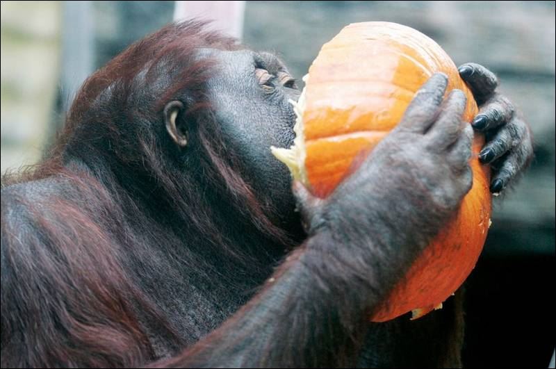 At the end of the halloween season, the toledo zoo disposes of the tons of pumpkins on display in a natural way โ giving them to the animals.